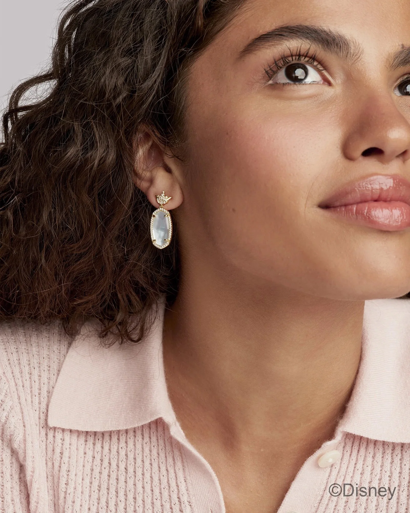 Disney Princess Gold Drop Earrings in Mauve Mother-of-Pearl by Kendra Scott ($98) – Speculatively Ariel (The Little Mermaid)