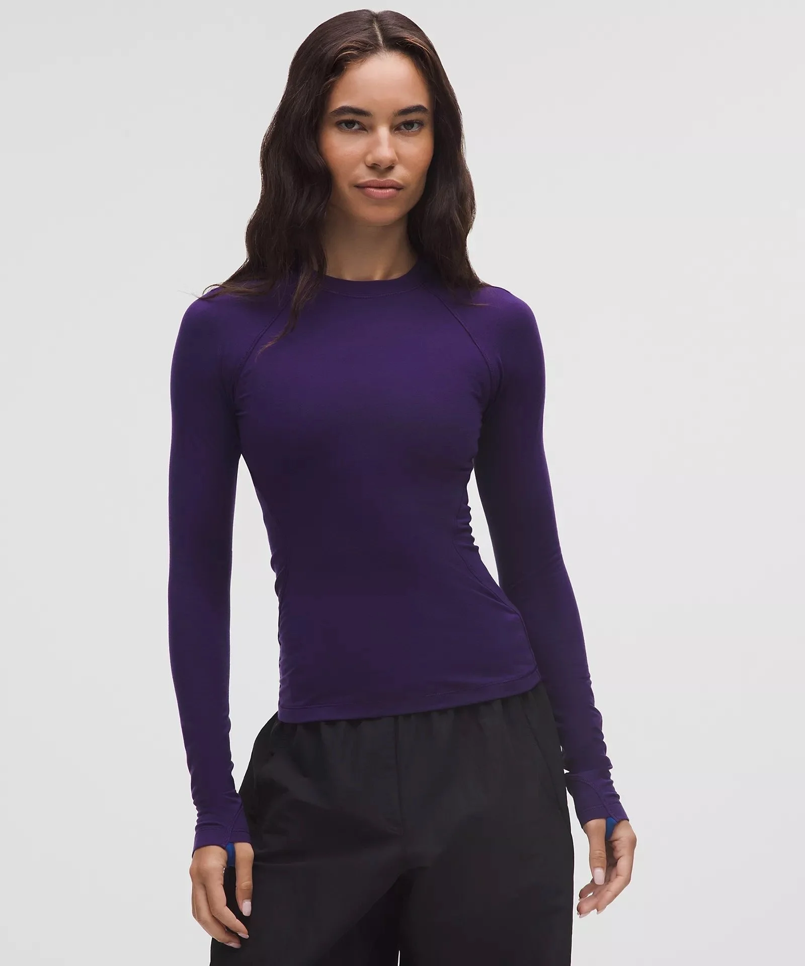 Swiftly Tech Long-Sleeve Shirt 2.0 Waist Length in Dark Court Purple ($78)