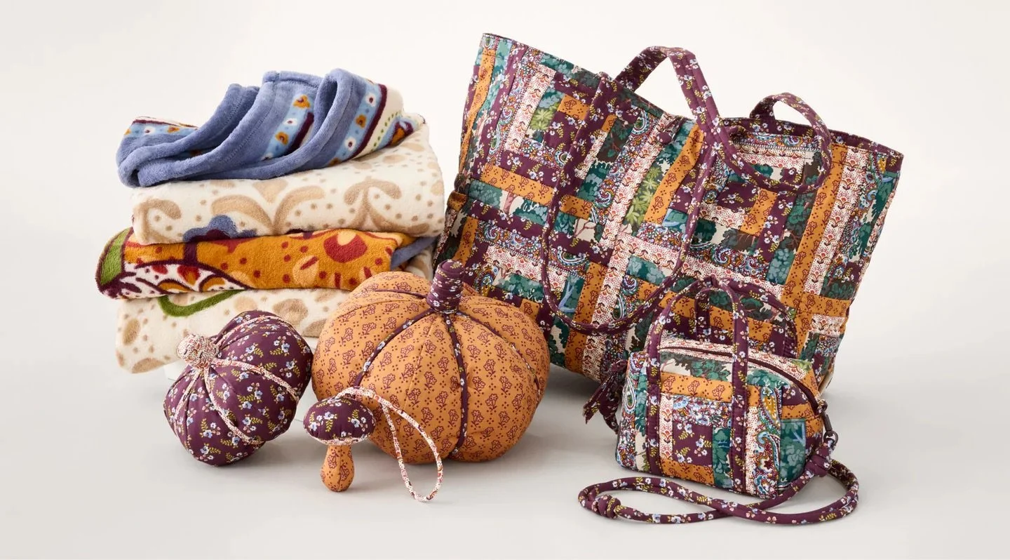 Vera Bradley has a new fall merchandise collection - the Vera Bradley Fall Harvest Collection! The collection includes a tote, crossbody bag, throw blanket, and pumpkins in a fall harvest patchwork print and pumpkin-themed designs. Check out all the available items below.